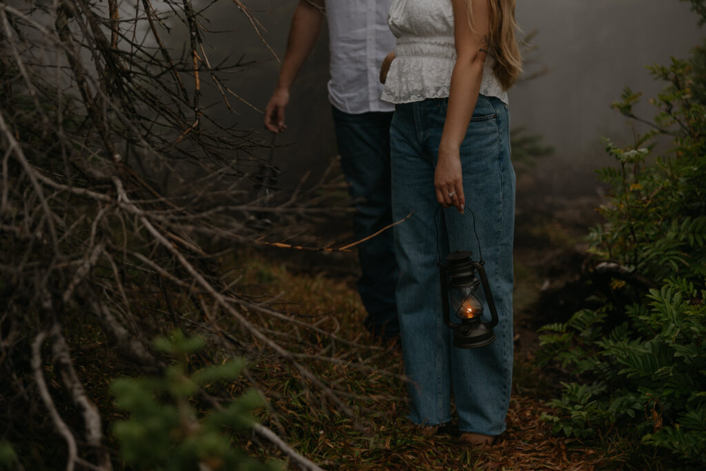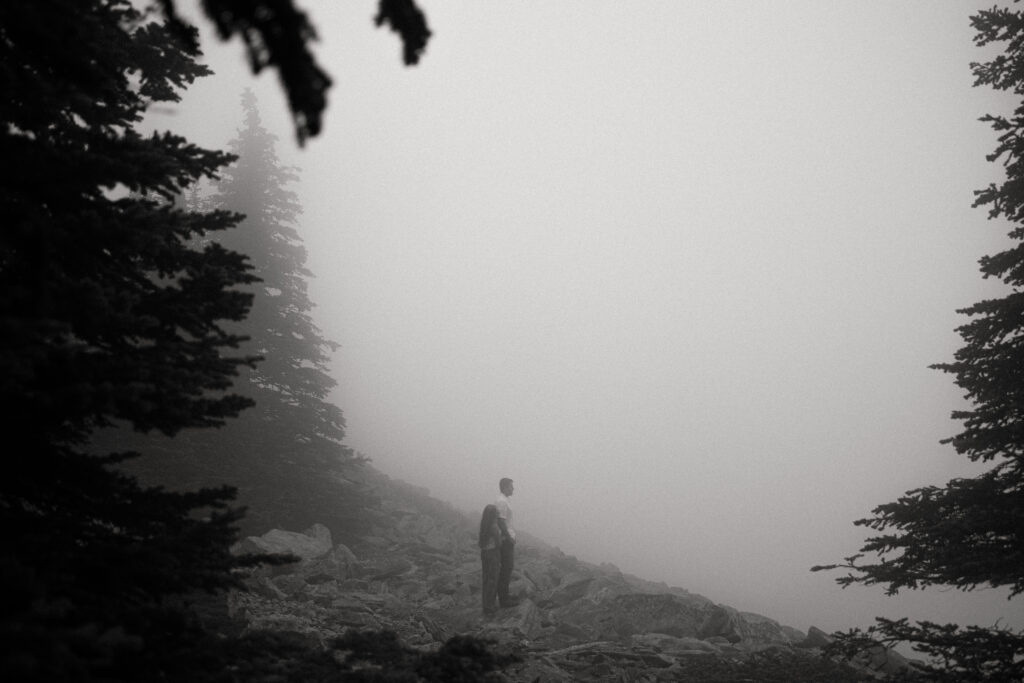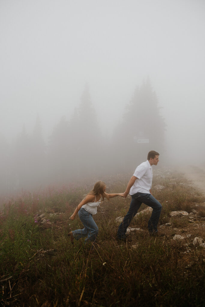 Washington Engagement Photographer takes on the moody mist in Spokane to capture these engagement photos in August of 2025.